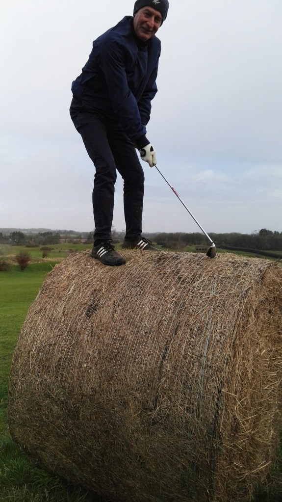 Somehow Mark managed to get his ball to stop on top of the bale – but how should they be treated? I see 3 possibilities for free relief and it would be Mark’s choice how he wished to proceed: