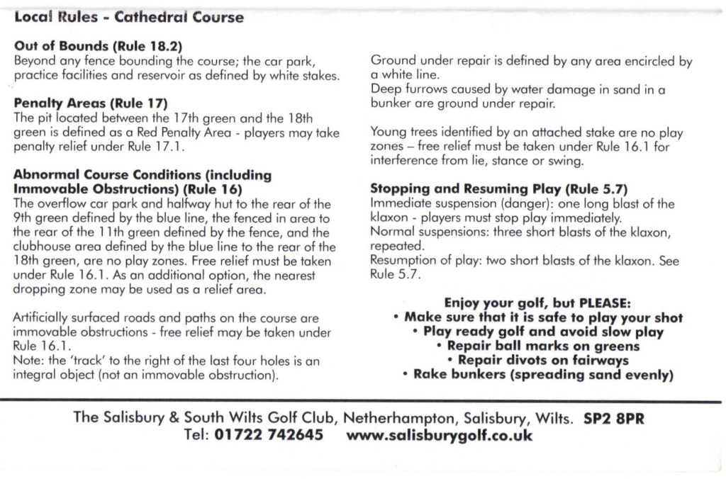 - Salisbury & South Wilts – Blue line marks a No Play Zone and relief may be taken in the nearest drop zone which may be nearer the hole