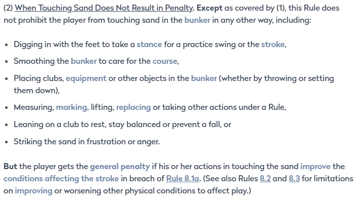 Rule 12 is all about bunkers. 12.2b describes the “Restrictions on Touching Sand in Bunker” and includes the following: