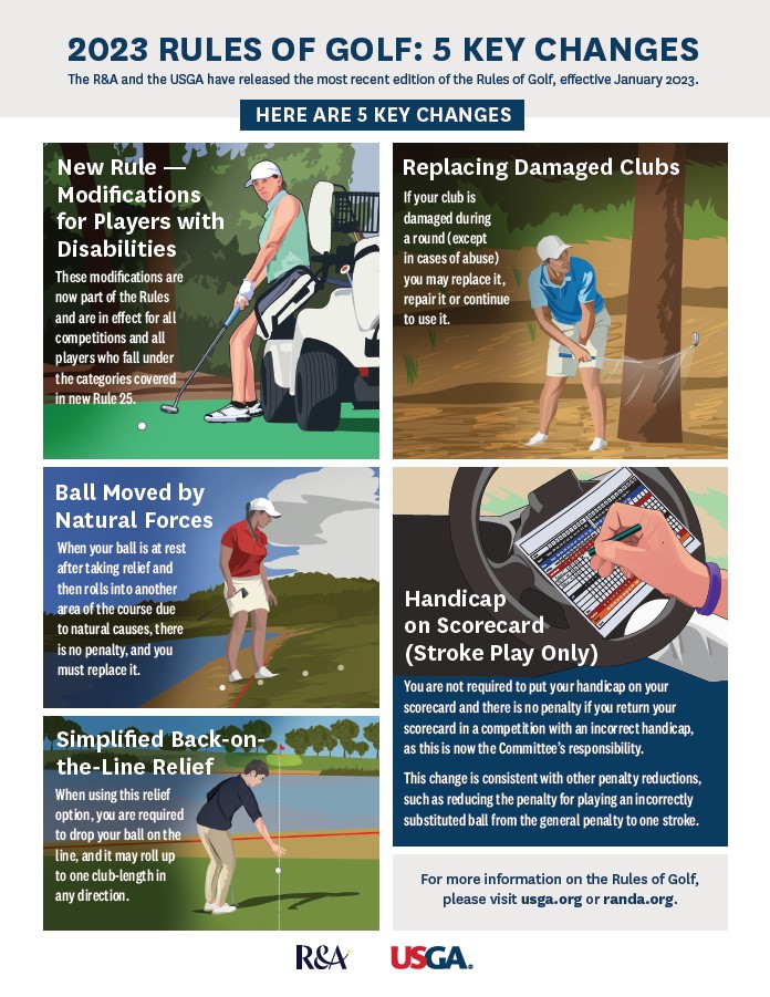 The revised rule book for 2023 and beyond is now published. As expected not many changes to get our heads around – here is the R&A/USGA’s “infographic” on the main changes.